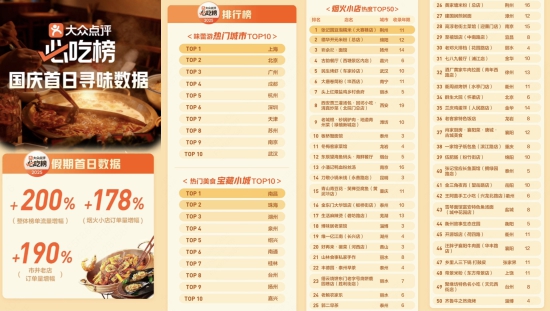 大众点评“必吃榜”发布“十一”假期首日寻味数据,烟火小店流量涨超125%、订单涨超178%