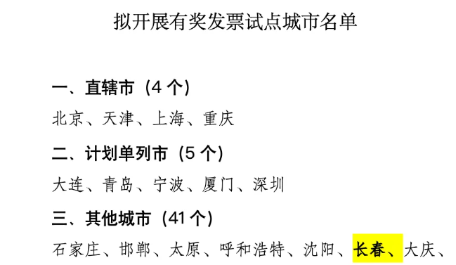 有奖发票试点城市公示!吉林省一地入选